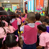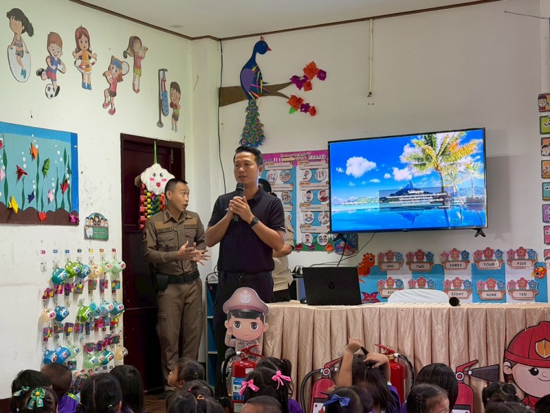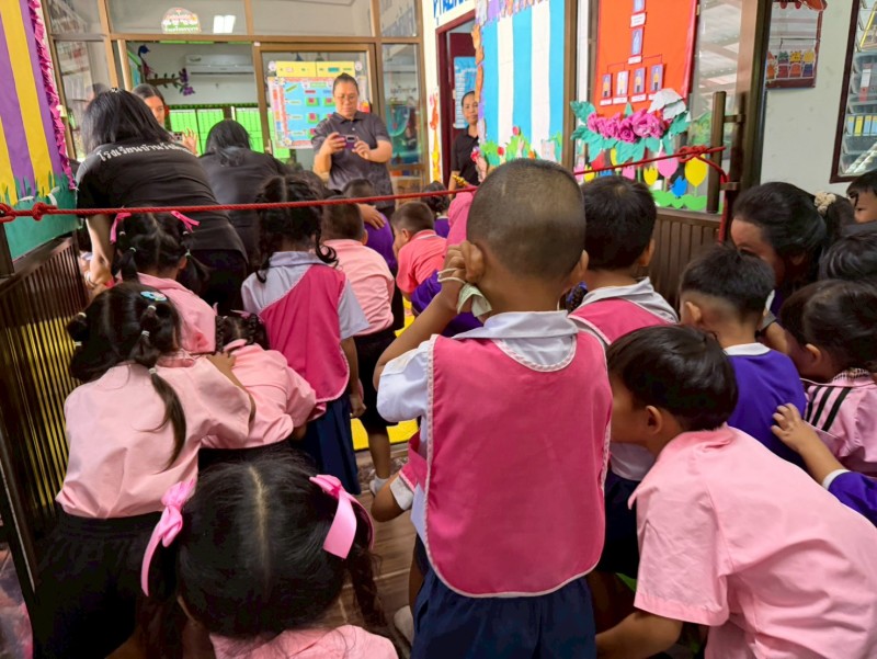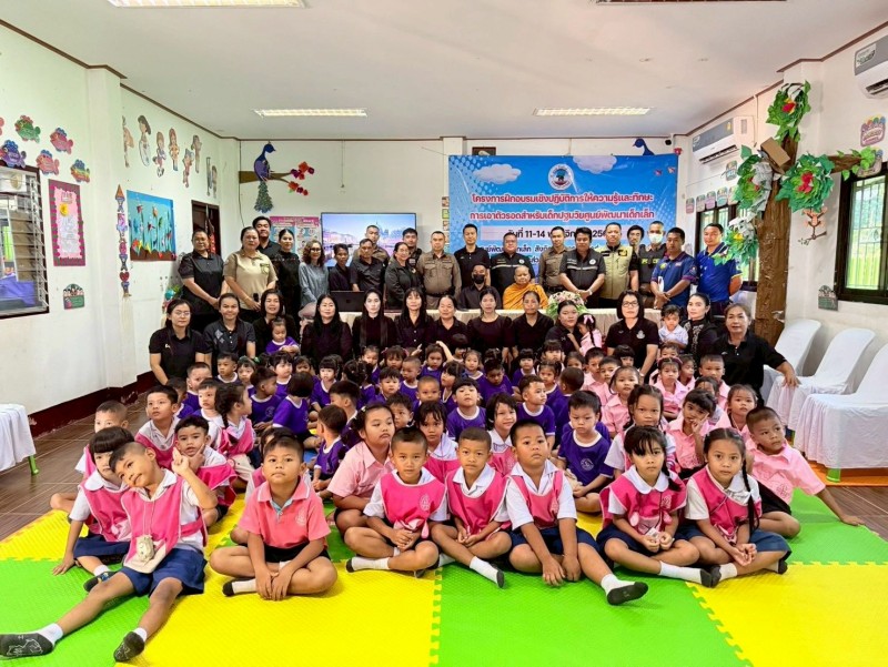 นักเรียนระดับชั้นอนุบาล 2-3 เข้าร่วมโครงการฝึกอบรมเชิงปฏิบัติการให้ความรู้และทักษะการเอาตัวรอด สำหรับเด็กปฐมวัย