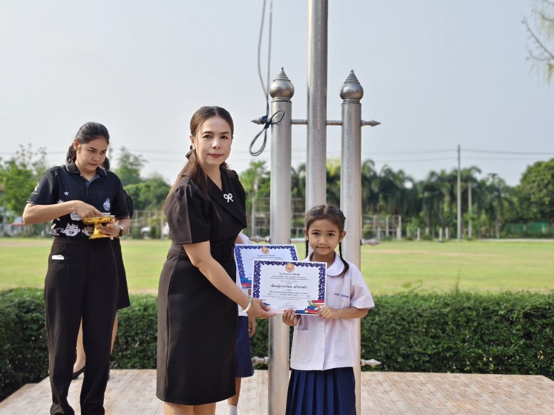 วันที่ 24 มีนาคม 2569 นำโดย นางสจิตรา เกตุแก้ว ผู้อำนวยการ นางสาวจิดาภา โพธิ์ถาม รองผู้อำนวยกวยการพร้อมด้วยคณะคร ร่วมมอบรางวัลให้แห้แก่ นักเรียนปีความสามารถด้านดนตรี กีฬา มีผลการเรียบดี มีจิตอาสาการประกวดสวดมนต์หมู่สรรเสริญพระรัตนตรัยและผ่านเกณฑ์ การสอบ O-NET ตามเกณฑ์ที่โรงเรียนกำหนดเพื่อเป็นขวัญและกำลังใจให้น้กเรียนและสะท้อนถึงความสำเร็จที่เกิดจากความตั้งใจให้เรียนรู้ ความขยันหมั่นเพียร |