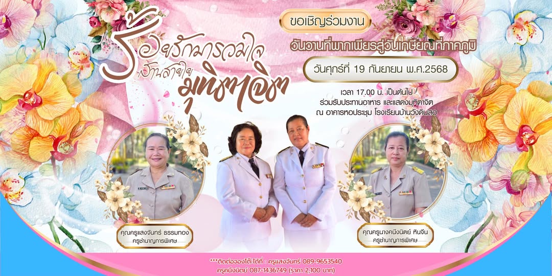ขอเชิญร่วมงานแสดงมุทิตาจิต คุณครูแสงจันทร์ ธรรมทอง และคุณครูคนึงนิตย์ หินจีน